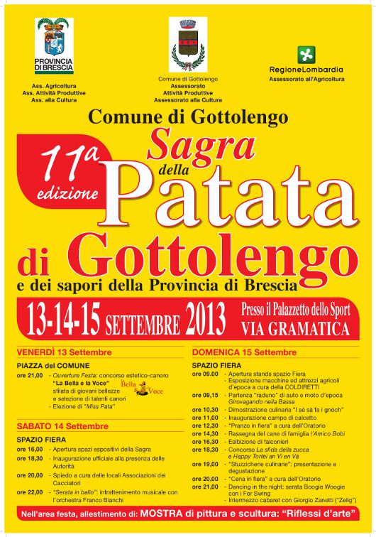 Programma della manifestazione: “FESTA DELLA PATATA DI GOTTOLENGO E DEI SAPORI DELLA PROVINCIA DI BRESCIA” ’13 – 11^ edizione