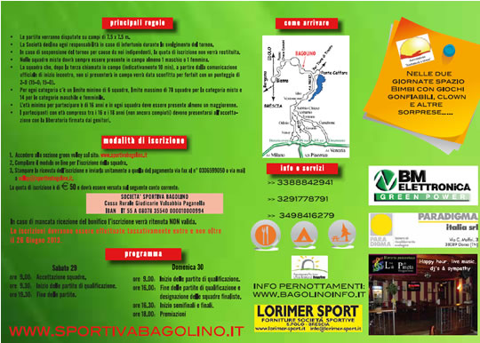 In programma per sabato 29 e domenica 30 giugno presso il parco pineta, la 13 Green Volley a Bagolino, 3×3 Maschile, Femminile e Misto. Sabato 29 Green Volley Party e dalle ore 18.00 Happy Hour