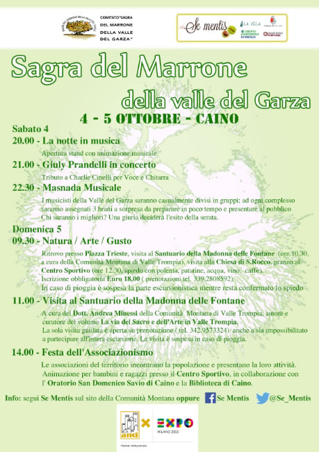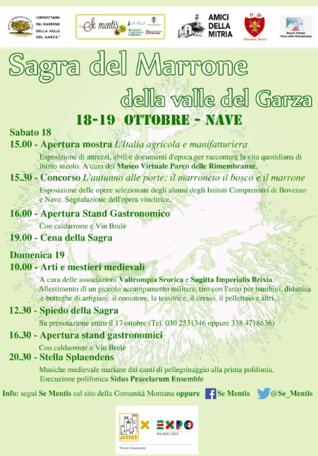Da domenica 28 settembre a domenica 19 ottobre 2014 torna per la 16° edizione la Sagra del Marrone della Valle del Garza. Il ricco programma prevede: escursioni guidate, gare podistiche, passeggiate enogastronomiche, cena con specialità a base di marroni, esposizione di prodotti enogastronomici e molto altro
