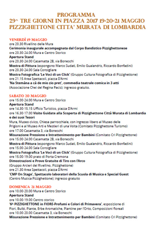 29° Tre Giorni in Piazza a Pizzighettone (CR)