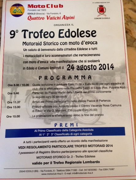 Domenica 24 agosto 2014 Edolo propone la 9° edizione del Trofeo Edolese, un motoraduno storico con moto d’epoca