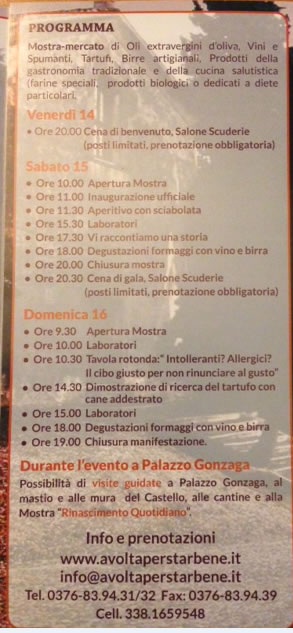 Sabato 15 e domenica 16 novembre 2014, Volta Mantovana propone la 15° edizione di A Volta per Star Bene, la mostra mercato dedicata agli Oli Extravergini di Oliva, Vini, Spuamanti, Tartufi e Birre Artigianali