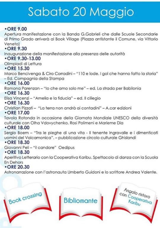 Sabato 20 e domenica 21 maggio via Vittorio Veneto e Piazza del Comune a Bovezzo, ospitano Book Street Festival, un evento dedicato alla letteratura per scoprire emozioni e profumi che i libri ci possono regalare
