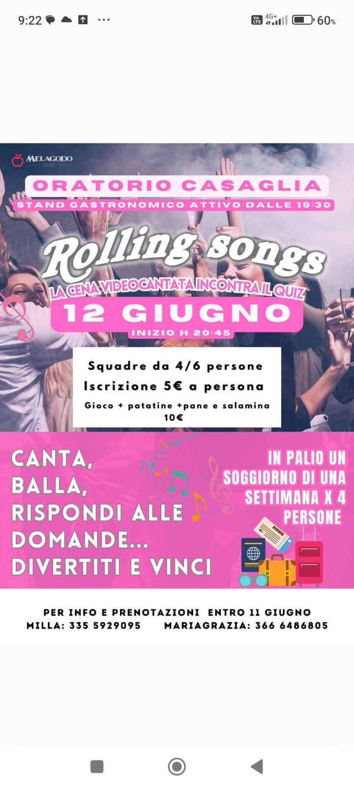 Cena cantata con karaoke e quizzone, tutti i dettagli riportati nella locandina…