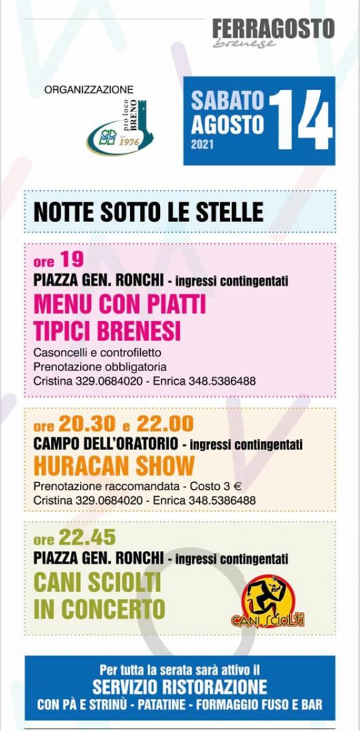 Dopo un anno di assenza a causa della pandemia e due anni di mancanza dalla Piazza Generale Ronchi torna l’atteso “Ferragosto Brenese”