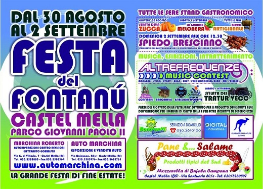Dal 30 Agosto al 2 Settembre 2012 Festa del fontanù a Castelmella presso il parco Giovanni Paolo II. Tutte le sere stand gastronomico e Domenica spiedo…