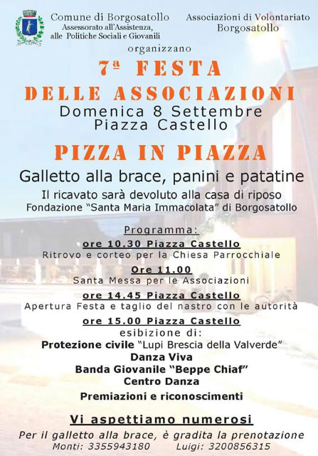 Domenica 8 settembre 2013 ritorna per la 7° edizione la Festa delle Associazioni, organizzata dalle Associazioni di Volontariato di Borgosatollo