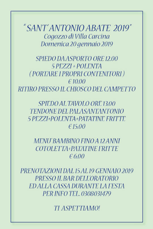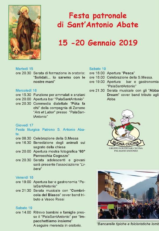 Da martedì 15 a lunedì 21 gennaio Cogozzo di Villa Carcina propone la Festa di Sant’Antonio Abate
