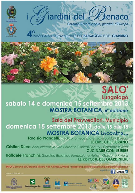 Sabato 14 e domenica 15 settembre 2013 ritorna la 4° edizione di I Giardini del Benaco, la rassegna internazionale del paesaggio e del giardino, presso il Lungolago di Salò