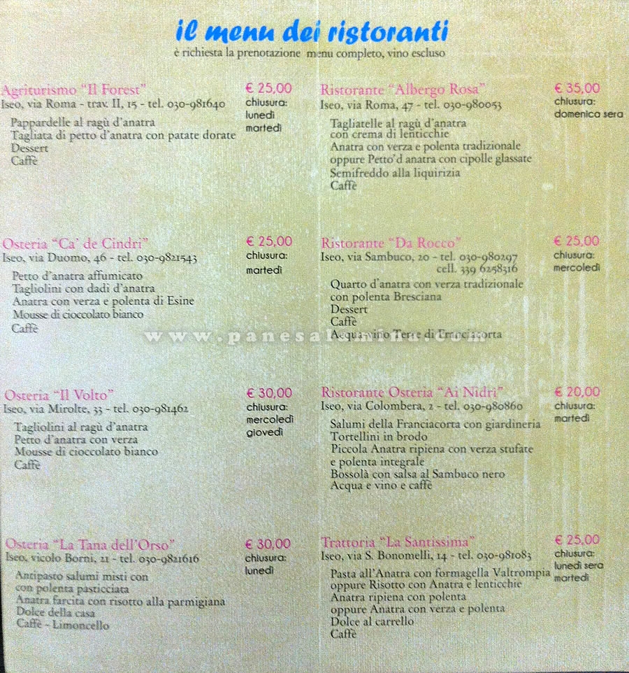 Una settimana gastronomica: Iseo in festa per il Patrono San Vigilio in programma dal 23 al 30 Settembre 2012. Menù a prezzo fisso per i ristoranti aderenti all’iniziativa. E’ richeista la prenotazione, vino escluso. Clicca sull’immagine riportata qui sotto per consultare il programma…
