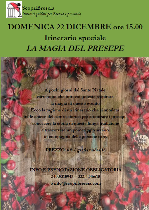 Per info e prenotazione obbligatoria 333.4246615 / 349.5315942 oppure info@scopribrescia.com