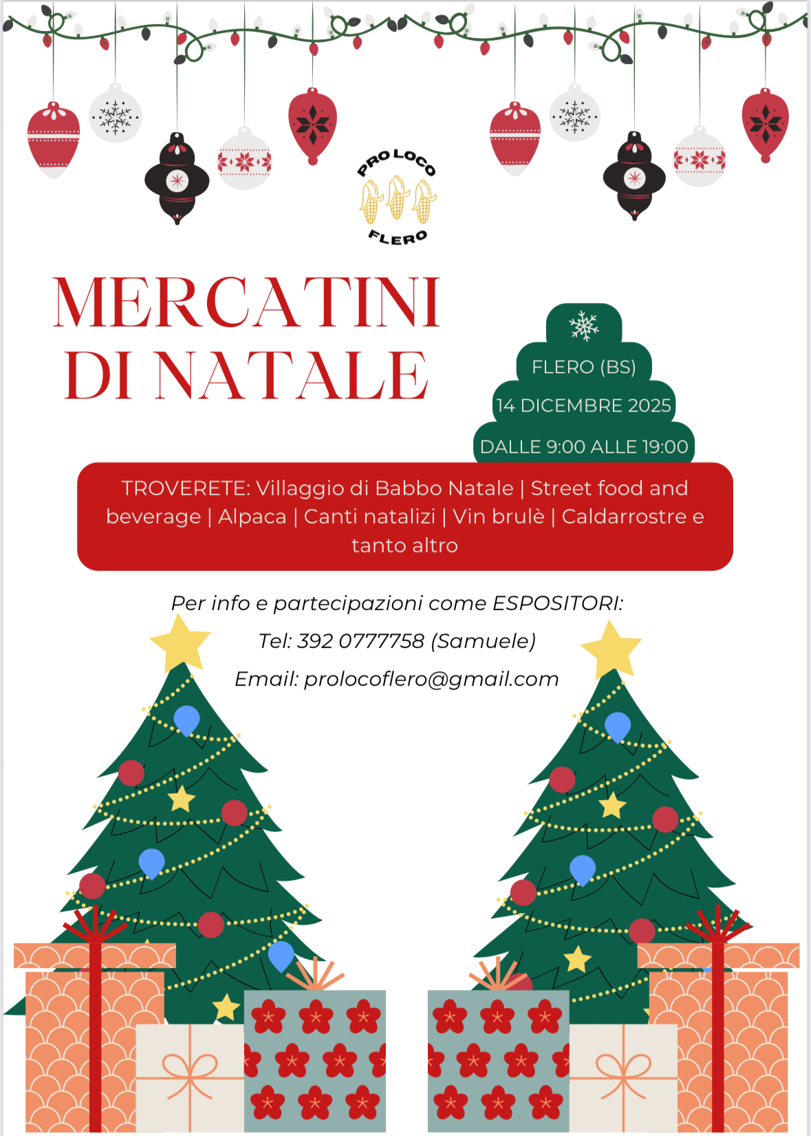 Mercatini di Natale di Flero m, la pro loco di Flero ogni anno si impegna nella realizzazione dei mercatini, dove si possono trovare un sacco di attrazioni per bambini come la casa di babbo natale e tanto altro, food truck spettacoli e tante bancarelle.