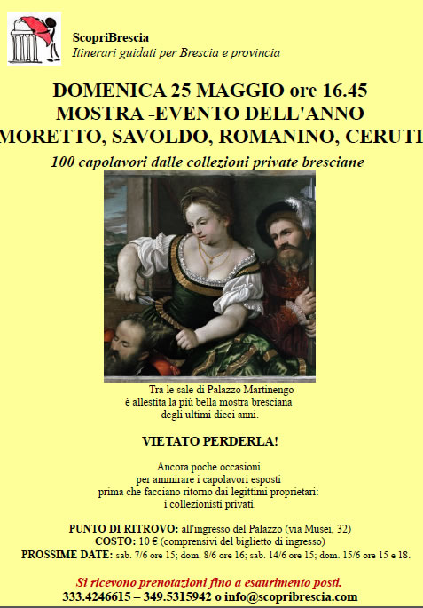 Domenica 25 maggio 2014 alle ore 16.45 si terrà una delle ultime visite guidata con ScopriBrescia alla mostra-evento dell’anno: Moretto, Savoldo, Romanino, Ceruti. Cento capolavori dalle collezioni private bresciane.