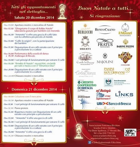 Sabato 20 e domenica 21 dicembre 2014 la Scuola d’Arti e Mestieri di Rovato propone Natale d’Arte e di Mestieri, 2 giorni dedicati alle mostre, laboratori, musica, intrattenimento, degustazioni ed esibizioni