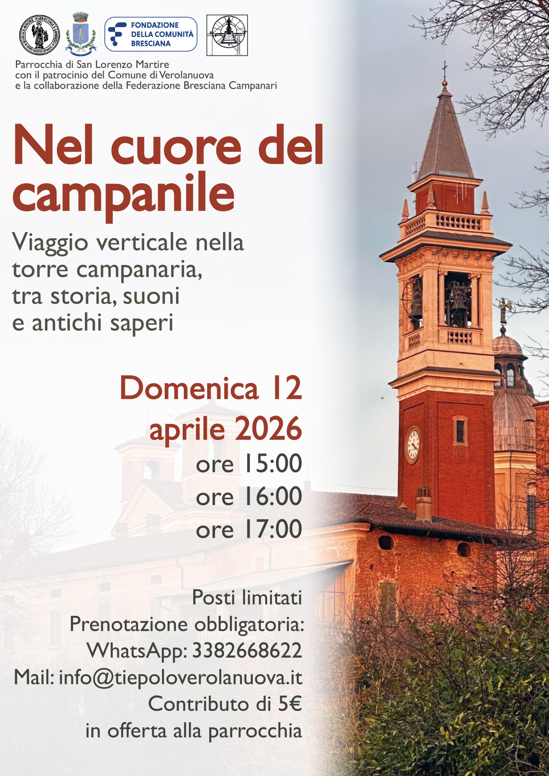 La visita sarà guidata dai ragazzi della Federazione Bresciana Campanari, che accompagneranno i partecipanti alla scoperta della tradizione campanaria e della storia delle campane di Verolanuova.