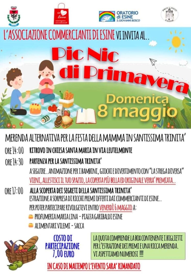 Associazione commercianti con il patrocinio del comune di Esine, Oratorio Esine e ProLoco invitano al pic nic di primavera in SS Trinità. Per maggiori info clicca qui.