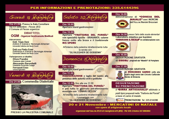 Il 18, 19 e 20 Novembre va in scena la famosa “sagra del pursel” di Fiesse.