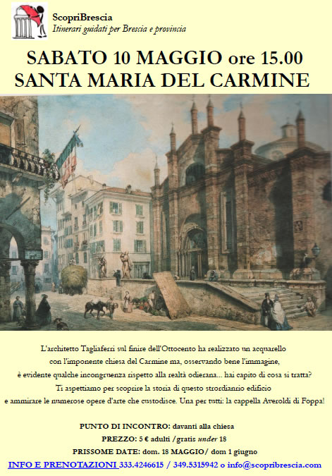 Sabato 10 maggio 2014 alle ore 15 le guide di Scopri Brescia hanno in programma una visita guidata alla Chiesa di Santa Maria del Carmine, un edificio straordinario che custodisce opere d’arte grandiose: dalla cappella Averoldi di Vincenzo Foppa all’altare marmoreo del Morlaiter che incornicia la Madonna bizzantina che la tradizione vuole dipinta dall’evangelista san Luca.