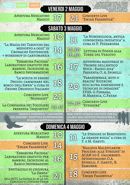 Pisogne il 3 e 4 maggio 2014 torna con la 5a edizione Strigarium, l’unico evento pagano della provincia di Brescia organizzato dall’ Associazione Culturale La Gufaia Aldilà del Cancello.Le streghe, il mondo magico e naturale saranno i protagonisti di un grande evento aperto e gratuito di due giorni.