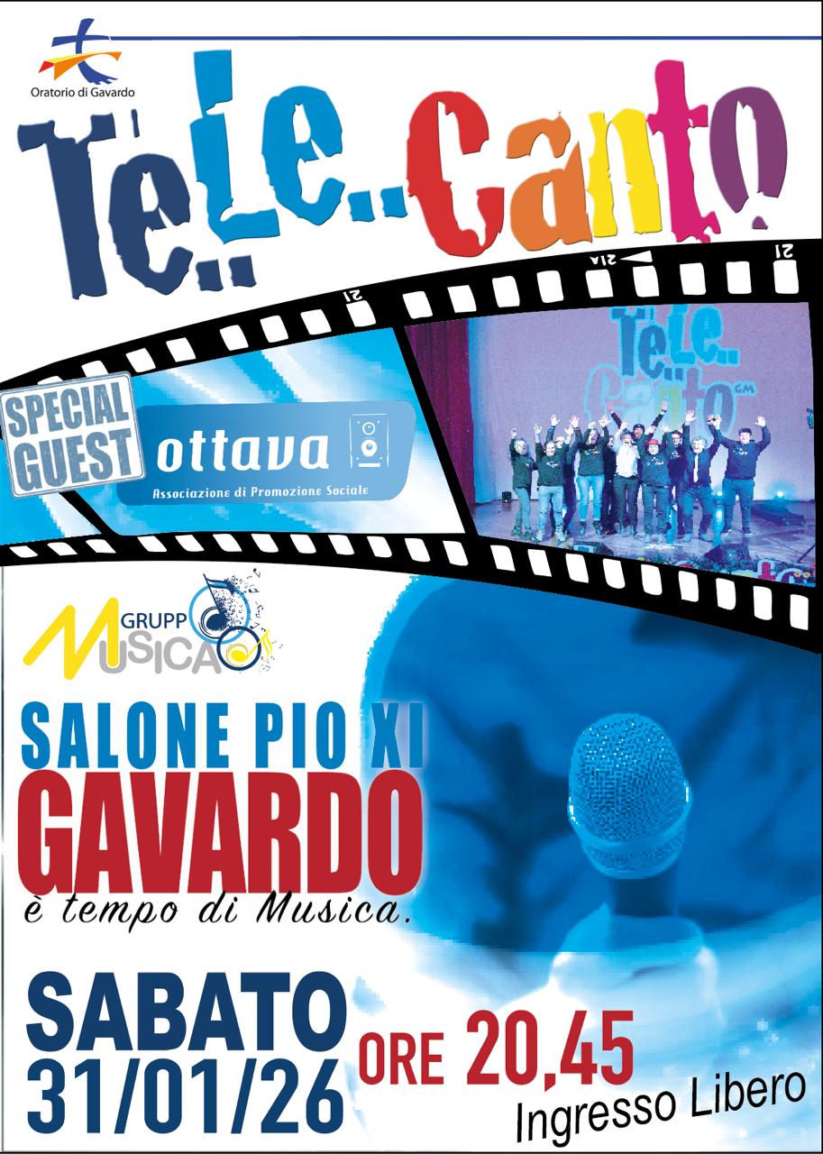 Sabato 31 gennaio 2026, alle 20:45, il Salone Pio XI si trasforma in un palco tutto da cantare con TeLe…Canto, lo spettacolo musicale del Gruppo Musicale dell’Oratorio di Gavardo, con la partecipazione speciale dell’associazione Ottava.