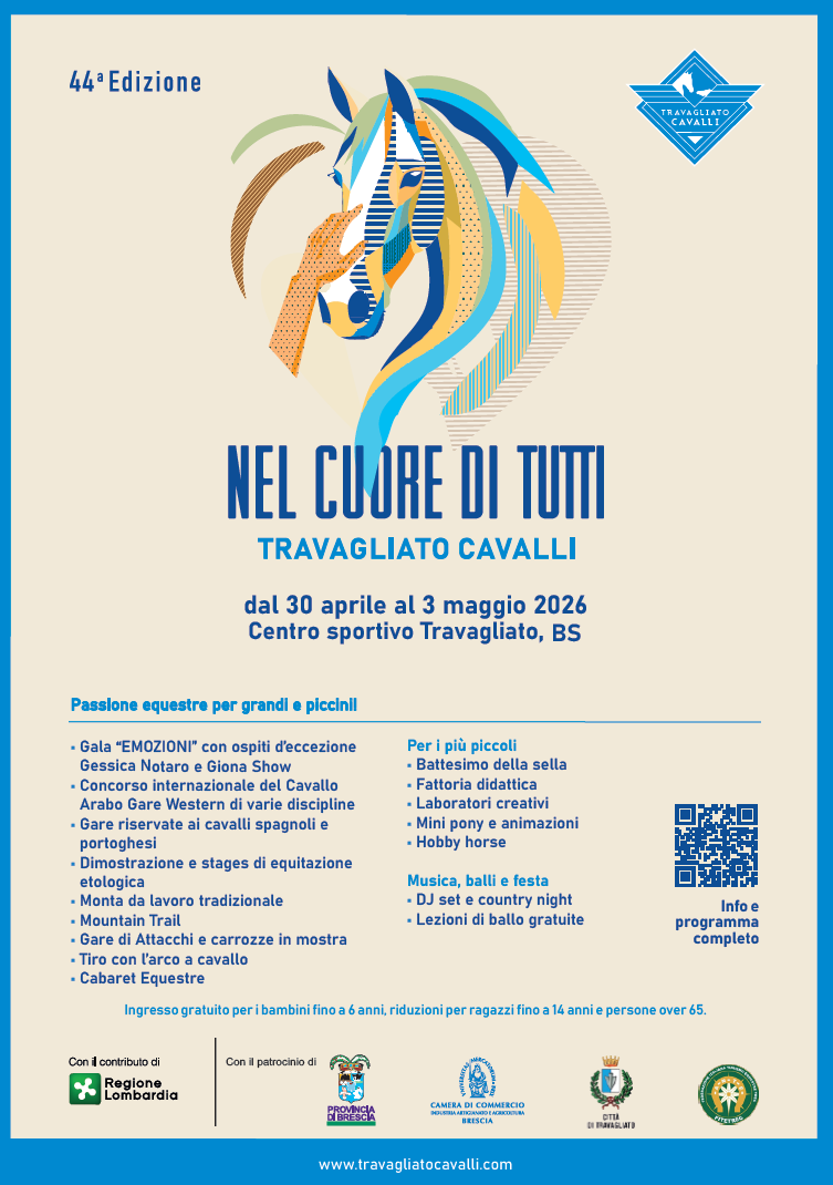 Da oltre quarant’anni, Travagliato Cavalli rappresenta un punto di riferimento a livello nazionale per il mondo equestre e per il tempo libero ad esso collegato. L’evento si svolge a Travagliato (BS) e quest’anno avrà luogo dal 30 aprile al 3 maggio, con numeri importanti: oltre 30.000 visitatori, più di 80 espositori e circa 600 cavalli provenienti da tutta Italia e dall’estero.