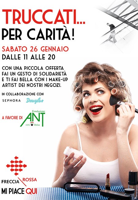 Sabato 26 gennaio i migliori make-up artist dei punti vendita Douglas e Sephora del Freccia Rossa di Brescia saranno a tua disposizione per truccarti e darti consigli . L’incasso andrà a Fondazione ANT organizzatore della giornata !
