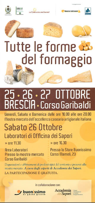 Da venerdì 25 a domenica 27 ottobre 2013 dalle ore 10.00 alle 20.00, in Corso Garibaldi a Brescia ci saranno Tutte le Forme del Formaggio, una mostra mercato dell’ eccellenza casearia artigianale italiana