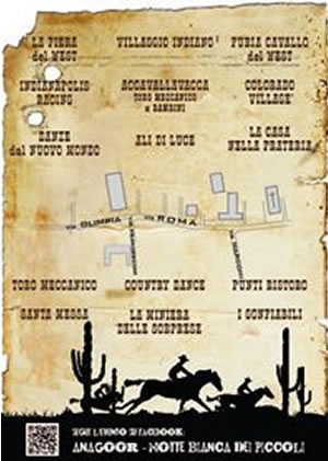 In programma sabato 7 settembre 2013 Una Temeraria Notte nel Far West, una Notte Bianca dedicata ai più piccoli, a Provaglio d’ Iseo, il centro del paese per l’occasione diventerà un vero Far West: con accampamenti indiani, villaggi Cowboys, canyon, cactus e con fantastiche scenografie