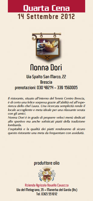Quarta cena in programma per il 14 Settembre 2012  presso Nonna Dori Via Spalto San Marco, 22 Brescia prenotazioni: 030 48214 – 339 1560005