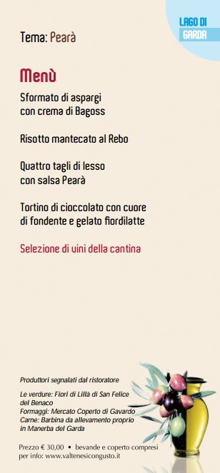 Nona edizione della rassegna Valtenesi con Gusto – Undici cene a Km zero. Per maggiori informazioni consulta il sito www.valtenesicongusto.it oppure la pagina di Facebook. un’iniziativa dell Associazione Rassegna Interregionale dell’ Olio Extravergine di oliva Garda D.O.P. Clicca qui per consultare il PDF del programma.