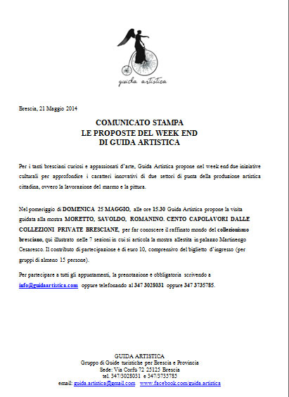 Per info e prenotazioni : info@guidaartistica.com tel 347 3028031 oppure 347 3735785.